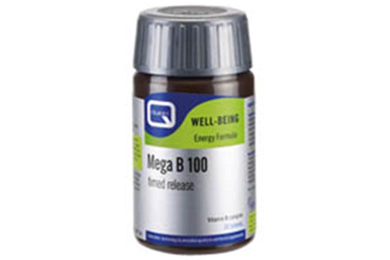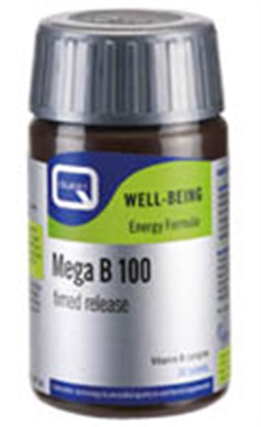 Das Nahrungsergänzungsmittel Mega B100 Timed Release von Quest, die Kombination von B-Vitaminen Körper vorgesehen in der verstärkt die Freisetzung von Energie aus der Nahrung kann der Speicher reduzieren Müdigkeit und Konzentrations-und Support. Auch der Vitamin B-Komplex-System benötigt für ein gesundes Nervensystem. Ernährung reich an Kohlenhydraten und anstrengende körperliche Aktivität zu erhöhen Anforderungen für Vitamine B