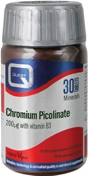 Das Nahrungsergänzungsmittel Chrompikolinat 200mg von Quest versorgt den Körper mit 200 mg Chrompicolinat mit Vitamin B3. Chrom hilft, normale Blutzuckerwerte. Unter Chrom kann besonders profitieren Menschen mit Diabetes. Vitamin B3 (Niacin) wirkt synergistisch mit Chrom und trägt zur Energieproduktion und Reduktion von Müdigkeit und Erschöpfung.