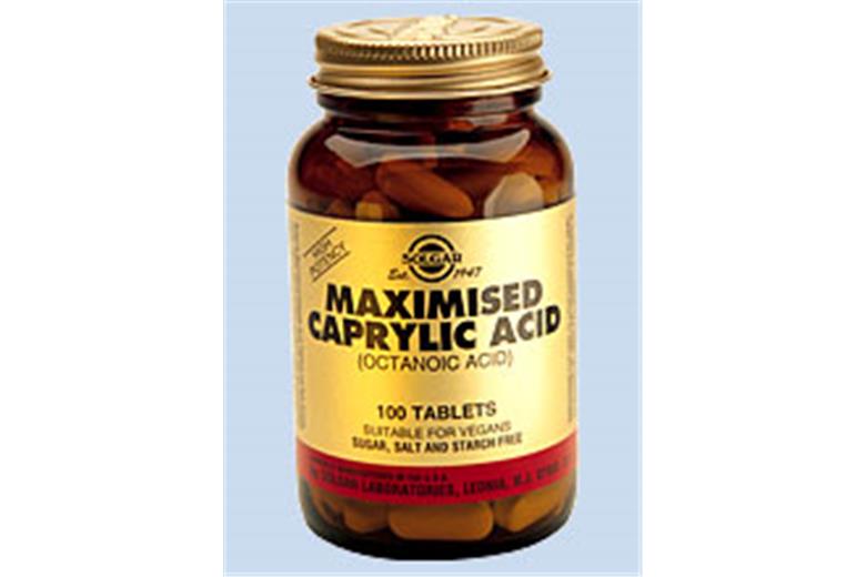 Oder Caprylic Octansäure, ein natürlicher Inhaltsstoff, der diätetischen Fettsäuren liefert Antifungale Tätigkeit, die ein Gleichgewicht der mikrobiellen Flora der Schleimhäute des Verdauungstraktes und der mikrobiellen Flora der Haut zu erhalten. Nützlich in Fällen von systemischen kantidiasis und lokalen fungal Infektionen. In Tabletten.
