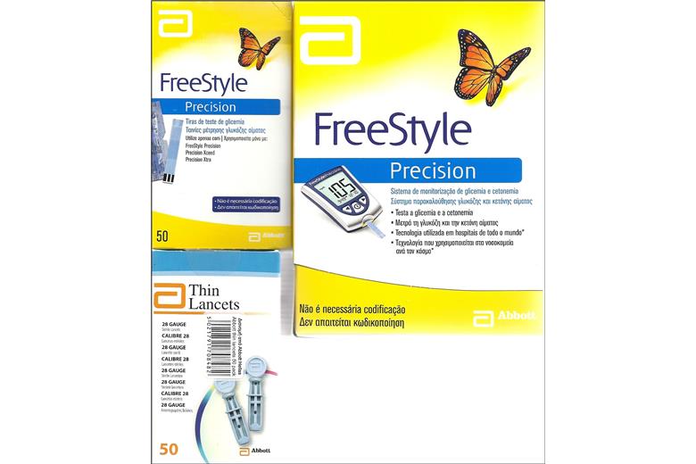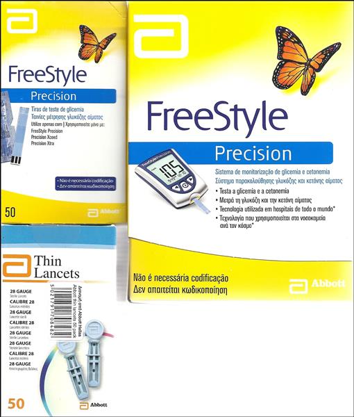 ABBOTT Freestyle Precision Blutzuckermessgerät + Freestyle Precision Strips 50er + 50er Thin Lanzetten CODE No: 000123