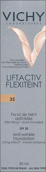 Make-up anti- wrinkle and firming direct effect lifting, not 'freezes ' the features . Thanks to the elastic properties of the silicone , the color is uniform as it follows the movements of prosopou.I composition is enriched with collagyl, which consists of three components of top anti wrinkles Vichy targeted the causes of aging and smoothing "filling" wrinkles in 1 month.