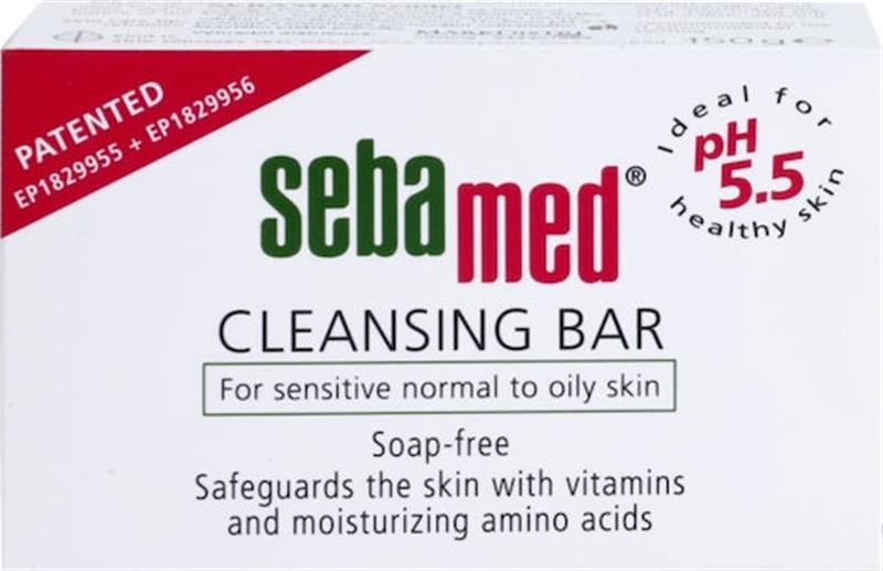SEBAMED pH 5.5 Cleansing Bar. Effectively cleans and takes care of the skin without drying, without causing irritation and inflammation process. The composition is 100% soap-free, contains many helpful ingredients. Is specific for skin oily, seborrheic and acne. An effective antimicrobial activity in acne and eczema by preventing the growth of fungi and bacteria. Suitable for sensitive skin who can not tolerate common soaps or other cleansers. Suitable for skin affected by rosacea. Enhances the acidic ydrolipidiko film of the skin, keeping the soft and flexible. Use hot water for oily skin to dry and warm. Keep in a dry place after use. Smigmatorythmistikoi cleansing agents in conjunction with: Vitamin B6 & E. Urea Phosphate, Wheat Starch, Lecithin, Alanine, Lysine, Leucine, Lactic Acid.