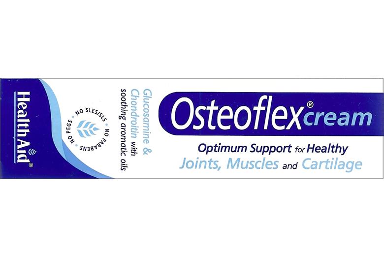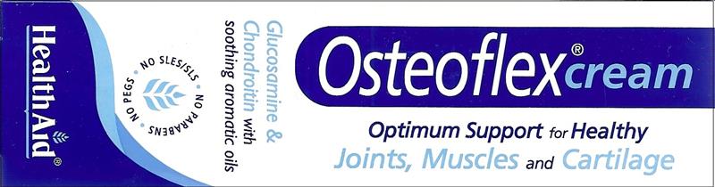 The Osteoflex Cream of Health Aid contains Glucosamine, Chondroitin & Essential oils relieve pain, inflammation and swelling in arthroseis.I Glucosamine is essential in maintaining healthy cartilage, delays normal wear & stimulates the production of new chondrou.I Chondroitin is a natural building block of cartilage and "lubricates" the joints for easy & painless motion. The essential oils of peppermint, eucalyptus & Almond facilitate penetration and with the softening and refreshing properties relieve pain.