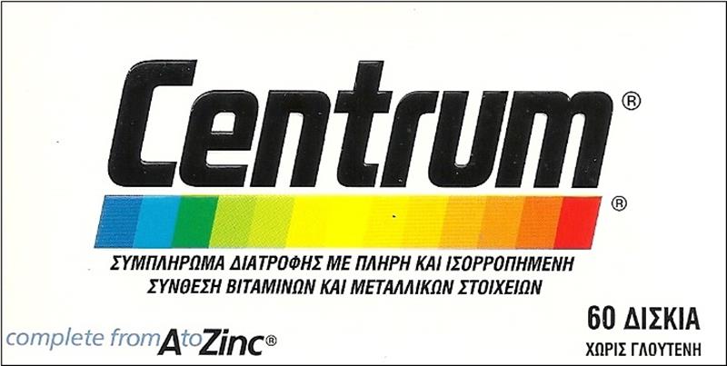 Advanced Composition - Gluten Free Unlocking Energy : Vitamin B and iron contribute to support the daily needs for energy. Immunity : Antioxidants necessary for normal functioning of the immune system. Healthy Skin : Vitamins A and C, beta - carotene and biotin for healthy skin. Environmental Factors : Vitamins C, E and selenium to help protect against the effects that cause environmental pollution and solar radiation. With Centrum sure ... you get a complete, balanced nutritional supplement . The Centrum contains all the necessary vitamins , minerals and trace elements in the required amounts , according to the RDA ( S. H. D.) 60 tablets = 74g