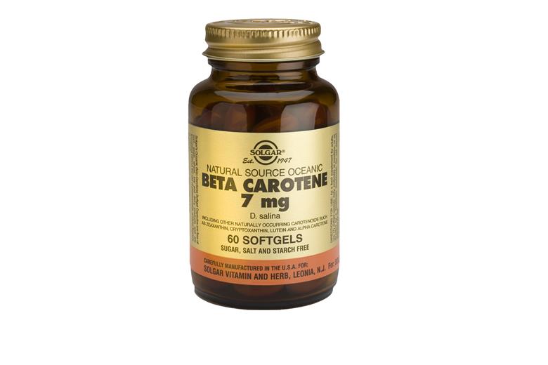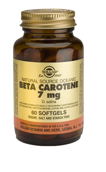 Natural source beta carotene from algae of the ocean (dunaliella salina) along with other natural carotenoids including lutein and zeaxanthin. Beta carotene is the most famous of all the carotenoids and can be converted to vit. A by the body. It does not cause toxicity vit. A. Large doses tend to produce a harmless yellow color of the skin especially on the palms and soles. In soft capsules.