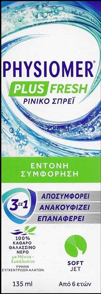 Το PHYSIOMER Plus Fresh είναι ένα φυσικό ρινικό σπρέι που σας βοηθά να αναπνέετε καλύτερα χάρη στην "3 σε 1" δράση του.