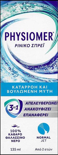 Το PHYSIOMER Normal Jet είναι ένα φυσικό ρινικό σπρέι που σας βοηθά να αναπνέετε καλύτερα χάρη στην "3 σε 1" δράση του.