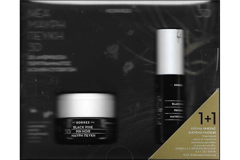 Κρέμα ματιών: Στην περιοχή γύρω από τα μάτια, η πιο λεπτή και ευαίσθητη περιοχή του προσώπου, τα σημάδια γήρανσης και κούρασης όπως χαλάρωση, ρυτίδες και μαύροι κύκλοι, γίνονται άμεσα ορατά. Για την αντιμετώπισή τους χρειάζεται καθημερινά συστηματική φροντίδα με εξειδικευμένα προϊόντα. Η συσφιγκτική κρέμα ματιών Μαύρη Πεύκη 3D προσφέρει άμεσο lifting με επανορθωτική δράση σε βαθιές ρυτίδες, πρήξιμο και μαύρους κύκλους. Ενισχυμένη με καινοτόμο δραστικό σύμπλεγμα αναδόμησης, spilanthes acmella και πολυφαινόλες Μαύρης Πεύκης, βελτιώνει την υφή και την ελαστικότητα της επιδερμίδας και προσφέρει ορατή 3D αναμόρφωση στην περιοχή γύρω από τα μάτια.