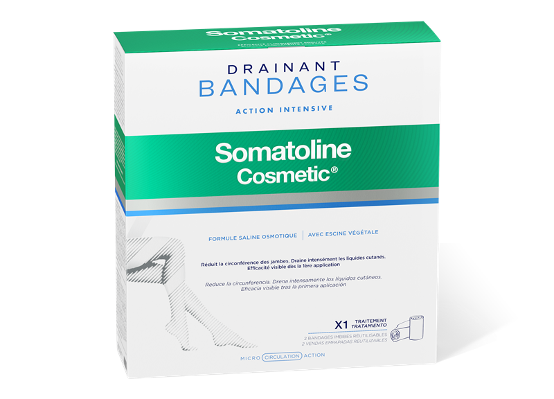 ΕΠΙΔΕΣΜΟΙ ΑΠΟΣΥΜΦΟΡΗΣΗΣ αγωγή εντατικής σμίλευσης: μια καινοτόμος επαγγελματική δραστική αγωγή που χρησιμοποιεί τη διαδικασία της ώσμωσης για να αποσυμφορήσει εντατικά και προωθεί μια δράση σμίλευσης στην πρώτη κιόλας εφαρμογή. Η σύνθεση περιέχει ένα ειδικό αλατούχο μείγμα με εντατική ωσμωτική δράση: ολόκληρο Αλάτι, πλούσιο σε αναγκαία ολιγοστοιχεία, και θειϊκό μαγνήσιο, το οποίο, όταν εφαρμόζεται σαν κομπρέσα, αποσυμφορεί τα περιττά υγρά που κατακρατούνται στους ιστούς, διευκολύνοντας τη μείωση των τοξινών και ενισχύοντας την επανεκκίνηση της μικροκυκλοφορίας του δέρματος. Χάρη στο άνετο ελαστικό τους ύφασμα, οι επίδεσμοι εφαρμόζουν εύκολα στις προς αγωγή περιοχές ασκώντας μια ευχάριστη πίεση που συμβάλλει στη βελτίωση της μικροκυκλοφορίας του δέρματος και στην αποτελεσματικότερη αποσυμφορητική δράση. Το παντελόνι, που φοριέται πάνω από τους επιδέσμους, δημιουργεί επιπλέον ένα αποτέλεσμα "σάουνας" που βελτιώνει την καλλυντική δράση για πόδια σμιλεμένα και πιο ανάλαφρα.