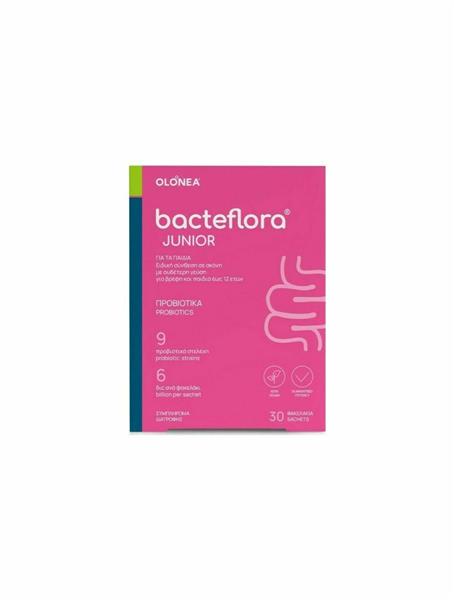 Το bacteflora JUNIOR είναι συμπλήρωμα ειδικής σύνθεσης 9 προβιοτικών στελεχών με 6 δις προβιοτικά βακτήρια ανά φακελάκι για την καθημερινή συμπλήρωση του εντερικού μικροβιώματος βρεφών και παιδιών έως 12 ετών. Διατίθεται σε μορφή σκόνης, με ουδέτερη γεύση για εύκολη κατανάλωση.