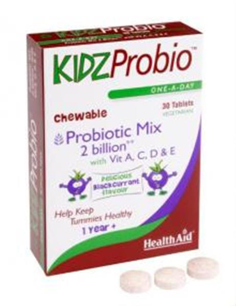 Το KIDZ Probio της HealthAid είναι μία εξαιρετική σύνθεση προβιοτικών 2 δις υψηλών προδιαγραφών για παιδιά, με βιταμίνες Α,C,D και Ε για τη διατήρηση της καλής υγείας του ευαίσθητου πεπτικού τους. Περιέχει ειδικές καλλιέργειες Lactobacillus και Bifidobacterium αλλά και βιταμίνες που κρατούν το πεπτικό σύστημα σε ισορροπία κυρίως μετά τη λήψη αντιβιοτικών, στη διάρροια, σε περιπτώσεις δυσανεξίας στη λακτόζη αλλά και σε περιπτώσεις πτωχής διατροφής γιατί βοηθά στην απορρόφηση των θρεπτικών συστατικών. Τα παιδιά θα το δεχθούν ευχάριστα γατί έχει υπέροχη γεύση βατόμουρο.