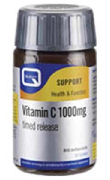Το συμπλήρωμα διατροφής Vitamin C 1000mg Timed Release της Quest παρέχει στον οργανισμό βιταμίνη C σε συνδυασμό με βιοφλαβονοειδή, η οποία μπορεί να μειώσει τις πιθανότητες εμφάνισης λοιμώξεων και κρυολογημάτων και είναι απαραίτητη για ένα υγιές ανοσοποιητικό σύστημα. Η βιταμίνη C προστατεύει τα κύτταρα από οξειδωτικές βλάβες που προκαλούνται από τοξίνες και το περιβάλλον, είναι απαραίτητη για τη σύνθεση του κολλαγόνου κι επομένως ένα σημαντικό δομικό συστατικό για το συνδετικό ιστό του δέρματος (ελαστικότητα), τα αγγεία του δέρματος, τους τένοντες, τους συνδέσμους και τα οστά. Επιπλέον, ενισχύει τη δραστηριότητα των anti-stress ορμονών, είναι απαραίτητη για την υγεία των ματιών, υποστηρίζει την καλή καρδιαγγειακή υγεία, διατηρεί τη χοληστερόλη σε καλά επίπεδα και αυξάνει την απορρόφηση του σιδήρου.