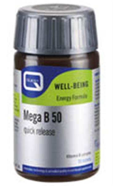 Το συμπλήρωμα διατροφής Mega B50 της Quest, λόγω του συνδυασμού των βιταμινών Β που παρέχει στον οργανισμό, ενισχύει την απελευθέρωση ενέργειας από την τροφή και μπορεί να ελαττώσει την κόπωση και να υποστηρίξει την αυτοσυγκέντρωση και τη μνήμη. Επίσης, το σύμπλεγμα βιταμινών Β απαιτείται για ένα υγιές νευρικό σύστημα. Δίαιτες πλούσιες σε υδατάνθρακες και έντονη φυσική δραστηριότητα αυξάνουν τις απαιτήσεις σε βιταμίνες B.