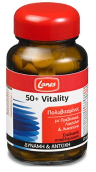 Η πολυβιταμίνη Vitality 50+ προσφέρει έναν καινοτόμο συνδυασμό βιταμινών & μετάλλων ενισχυμένο με έξτρα συστατικά και είναι ειδικά σχεδιασμένη για τις αυξημένες ανάγκες των ατόμων άνω των 50 ετών. Η πλήρης και ισορροπημένη σύνθεσή του αναπληρώνει διατροφικές ελλείψεις και συμβάλλει στη διατήρηση της φυσιολογικής λειτουργίας του οργανισμού ενισχύοντας το αμυντικό σύστημα και προσφέροντας ενέργεια, ζωτικότητα και αντοχή. Χάρη στις φυτικές ίνες ινουλίνης (πρεβιοτικά) μεγιστοποιείται η απορρόφηση των θρεπτικών συστατικών από τον οργανισμό, ενώ η προσθήκη της λουτεΐνης και του λυκοπένιου που έχουν ισχυρή αντιοξειδωτική δράση, συμβάλλουν στην αδρανοποίηση των ελεύθερων ριζών.