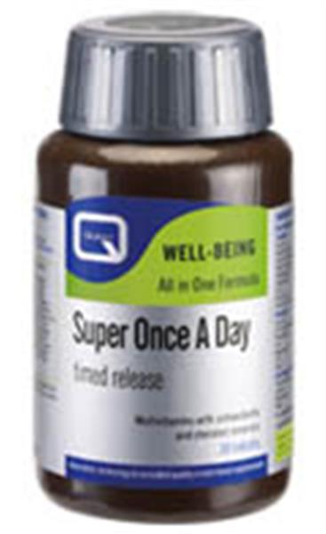 Το συμπλήρωμα διατροφής Super Once A Day Timed Release της Quest σχεδιάστηκε για όσους θέλουν να διατηρήσουν μια βέλτιστη υγεία και καλή φυσική κατάσταση. Επίσης, αποτρέπει τη συσχετιζόμενη με τον τρόπο ζωής ανεπάρκεια των απαραίτητων θρεπτικών συστατικών, προστατεύει τα κύτταρα από οξειδωτική βλάβη που προκαλείται από τοξίνες και από το περιβάλλον, προσφέρει ενέργεια και ζωντάνια, ελαττώνοντας την κόπωση, ενισχύει την απόκριση του ανοσοποιητικού συστήματος και υποστηρίζει την αυτοσυγκέντρωση και τη μνήμη.