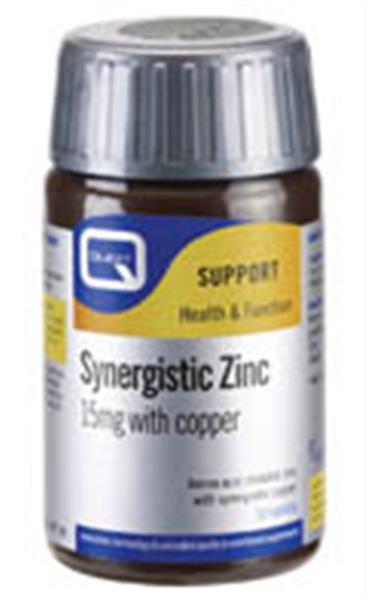 Το συμπλήρωμα διατροφής Synergistic Zinc 15mg της Quest παρέχει στον οργανισμό ψευδάργυρο και χαλκό που αυξάνει τη απορρόφησή του. Ο ψευδάργυρος είναι γνωστός για τις επουλωτικές του ιδιότητες, γι’ αυτό και παίζει σημαντικό ρόλο στην επούλωση πληγών και στη διαδικασία επούλωσης στομαχικών ελκών. Επίσης, είναι πολύ σημαντικός για την υγεία του δέρματος και τη σωστή λειτουργία και απόκριση του ανοσοποιητικού συστήματος. Τέλος, ο ψευδάργυρος είναι σημαντικό συστατικό για τη σωστή λειτουργία του ανδρικού αναπαραγωγικού συστήματος.