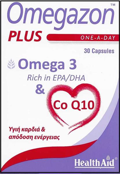 Το Omegazon Plus της HealthAid αποτελεί μια πρωτοποριακή σύνθεση από υψηλής καθαρότητας Νορβηγικά ιχθυέλαια, πλούσια σε Ω3 (EPA/DHA) και Συνένζυμο Q10, συνδυάζοντας τις ευεργετικές ιδιότητες και των δύο συστατικών όσον αφορά στη φροντίδα και την τόνωση της καρδιάς, του κυκλοφορικού και του μυϊκού συστήματος. Κατάλληλο για όσους λαμβάνουν παράλληλα αγωγή για υπερλιπιδαιμία (στατίνες),καθώς αυτές μειώνουν την παραγωγή του συνενζύμου από τον οργανισμό, με αποτέλεσμα τα συμπτώματα κόπωσης και μυαλγιών.