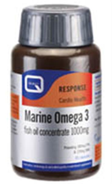 To συμπλήρωμα διατροφής Marine Omega 3 fish oil concentrate 1000mg της Quest είναι μια συμπυκνωμένη πηγή των ωμέγα-3 λιπαρών οξέων EPA & DHA από ιχθυέλαια θαλάσσιων ψαριών. Τα λιπαρά αυτά οξέα υποστηρίζουν την υγεία των αρτηριών, τη διατήρηση της χοληστερόλης σε καλά επίπεδα και τη γενική υγεία της καρδιάς. Επίσης, μετριάζουν το οίδημα των αρθρώσεων, τη δυσκαμψία και τον πόνο που συνδέεται με τη ρευματοειδή αρθρίτιδα. Ακόμη, ενισχύουν την αύξηση και ανάπτυξη του βρέφους, συμπεριλαμβανομένων των λειτουργιών των ματιών και του εγκεφάλου.