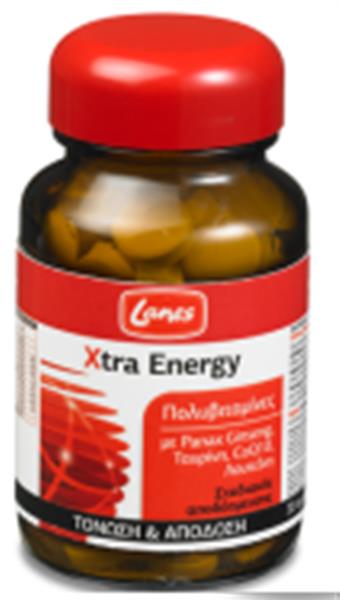 Η πολυβιταμίνη Xtra Energy είναι ένας πρωτοποριακός συνδυασμός βιταμινών και μετάλλων ενισχυμένος με Panax Ginseng & συνένζυμο Q10 που προσφέρει ενέργεια και τόνωση στον οργανισμό. Η σύνθεσή της αναπληρώνει τις διατροφικές ελλείψεις που προκύπτουν από τη μη ισορροπημένη διατροφή ενώ το εκχύλισμα Panax Ginseng & το CoQ10 συμβάλλουν στην extra σωματική και πνευματική τόνωση του οργανισμού.