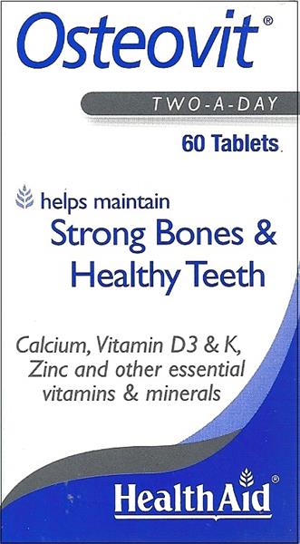To Osteovit της Health Aid aπαραίτητο για την υγεία και τη διατήρηση δυνατών οστών δρα αποτρέποντας την δημιουργία των γνωστών προβλημάτων της τρίτης ηλικίας (οστεοπενία, κατάγματα κ.λ.π.), περιέχει:
